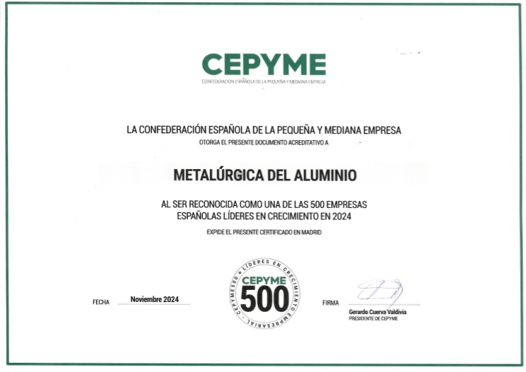 Wir sind stolz darauf, bekannt zu geben, dass Malsa im Rahmen der CEPYME500-Initiative als eines der 500 herausragendsten Unternehmen in der spanischen Geschäftswelt anerkannt wurde.